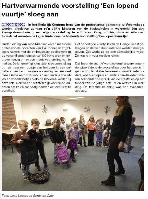 "Hartverwarmende voorstelling 'Een lopend vuurtje' sloeg aan." Lees hier het artikel.